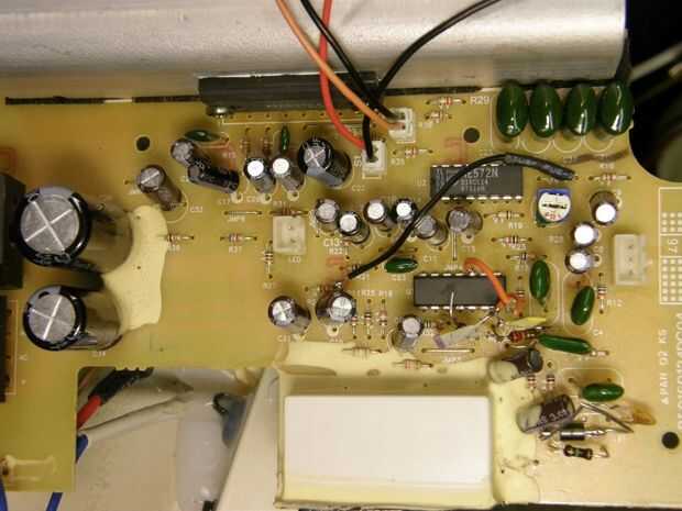 La foto de la placa de circuito se dispara en algún momento al inicio del proyecto cuando me di cuenta que era demasiado difícil de llevar a cabo ingeniería inversa solo mirando la placa de circuito y dibujar el diagrama de cableado. Se hizo algunas pruebas, por ejemplo, omitiendo la parte de filtro de paso bajo y aumento de la impedancia de entrada más guarnición 500k. Encima de la foto puedes ver la potencia con el disipador de calor de perfil L de aluminio de bajo presupuesto original. Esta foto fue utilizada junto con la foto invertida del lado soldadura para la ingeniería inversa.