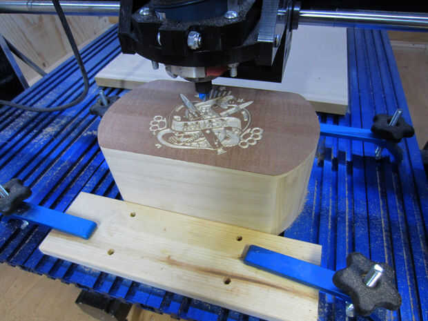 Tallados el diseño usando una máquina CNC, pero también puede aplicarse con una leña de hierro, tallada con herramientas rotatorias, buen ol ' láminas de moda, etc.. También se podría aplicar el diseño utilizando el método de transferencia descrito en mi mesa de centro instructivo.