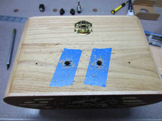 Plan y marcar el diseño de los controles. Durante la perforación, me gusta usar un poco de cinta de pintor para limpiador de agujeros en la madera.