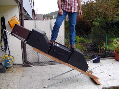 Hey guitarristas, ya que nuestros oídos están forma en nuestras cabezas y no en las rodillas, es mejor si amperios piso proyectan nuestra música hacia arriba.Aquí es una forma barata de hacer un soporte inclinado para sus amplificadores de guitarra.L