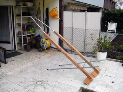 Este utiliza dos 6 pies largo 4 x 4 puestos y dos 3/4" acero postes, de unos 5 pies de largo, para las piernas.