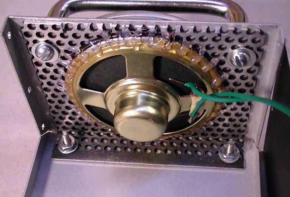 El bisel del altavoz es el borde de una lata que se ajustaron al caso.
