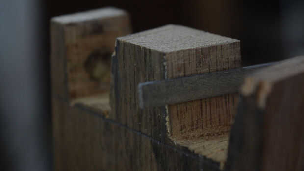 No voy a entrar en gran detalle en esta parte, porque este proyecto no es acerca de colas de Milano. Simplemente sacar las colas como usted quiere y recorto. Yo utilice una lima para pulir finamente cualquier imperfección. Luego trazar su cola sobre la pieza que va y cortar la pieza de acoplamiento.