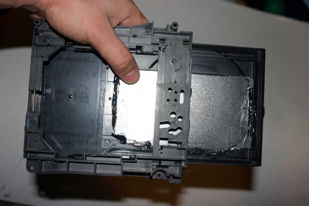 La bandeja como es no va a funcionar por lo que tienes que poner algo en él. Hay una pieza de aislante plástico de dentro que cuando corte funciona a la perfección. Sólo se cortan al tamaño como se muestra en la imagen y el pegamento en su lugar. Después de todo sólo poner la parte trasera superior para mantener la bandeja de salir completamente y su acabado.