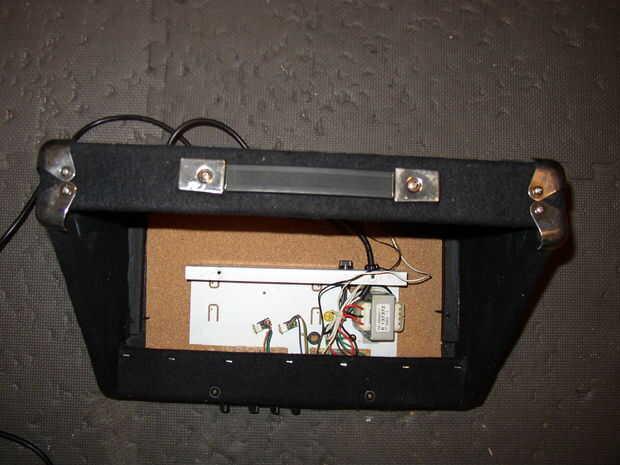 es un cabezal de guitarra eléctrica de un viejo amplificador de combo Audiovox, es fácil de llevar y usar con cualquier altavoz.Paso 1: Es un amplificador de guitarra combo 1 x 12, un altavoz de 12", pero voy a utilizar sólo la parte de amplificador.