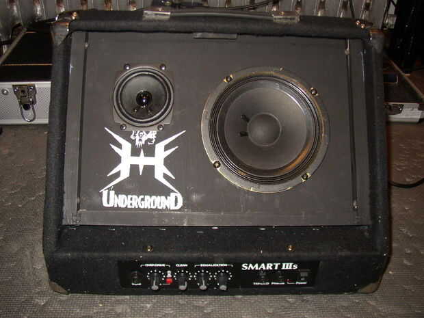 es un amplificador combo de guitarra eléctrica con un altavoz de 12", que es muy buen amplificador que limitarse sólo a un orador, lo que hago es tomar el amplificador parte de la caja y del recinto, esto se convirtió en una cabeza del amperio, el be