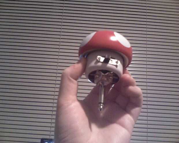 también en este paso, hacer un agujero rectangular en la parte posterior de la seta (lejos de sus ojos)