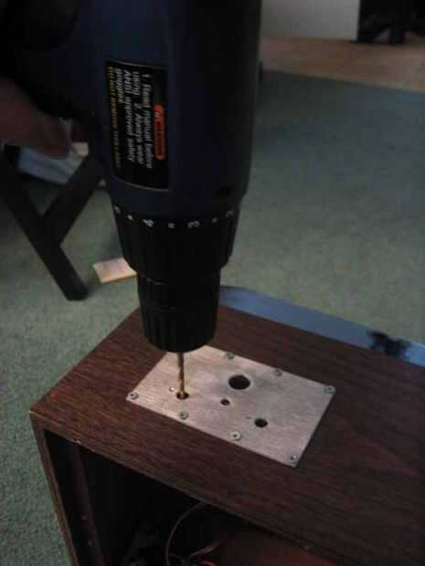 Montado la placa donde quería y taladrar los agujeros para saber donde se montan las piezas. Entonces solía el aditamento de fresadora para mi herramienta rotatoria los orificios lo suficientemente grande para colocar el bote entero y jack a través de la ruta. Nota: usted realmente debemos a usted para conseguir una herramienta rotatoria con un buen conjunto de accesorios, solo lo hace todo mucho más fácil.