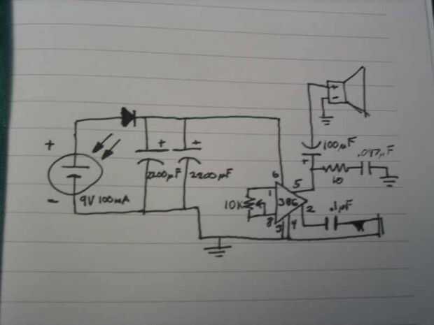 He añadido una perilla de volumen más adelante porque era tan fuerte cuando me encontré un ipod a través de él. Os adjunto la clavija de entrada del potenciómetro a la señal de entrada antes de la tapa de .1uf va al pin IC 2, el limpiaparabrisas en la tapa y el tercer pin a tierra.