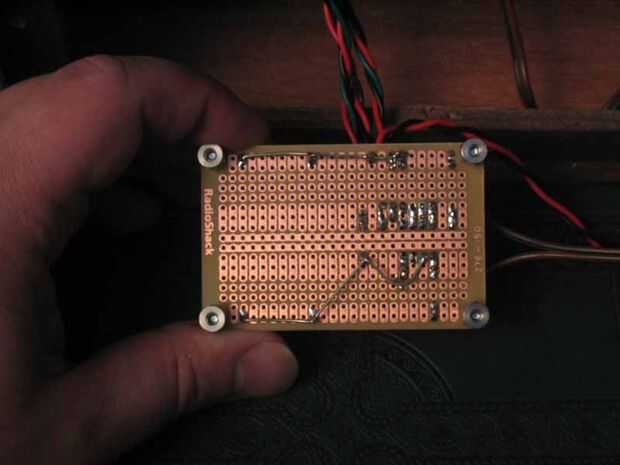 Sólo usé un Radio Shack PCB para este proyecto porque lo tenía colocación alrededor y había tan pocas piezas es fácil de colocar en este tablero para usar los rastros. Esto redujo la cantidad de cableado punto a punto y soldar que tenía que hacer.