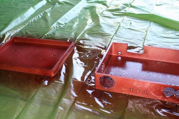Como se puede ver en las fotos, he usado spray en la mancha. Elegí una oscura mancha de cereza, pero usted puede elegir lo que quieras. Si usted quiere hacer un trabajo realmente bueno, lo use en spray mancha (piense de él como si fuera un bronceado en spray). No tiene mancha y terminar el interior o el fondo de la caja, pero lo hice simplemente porque se agregar un nivel adicional de protección entre la electrónica y la madera cruda, inacabada. Quizá sea importante, tal vez no.