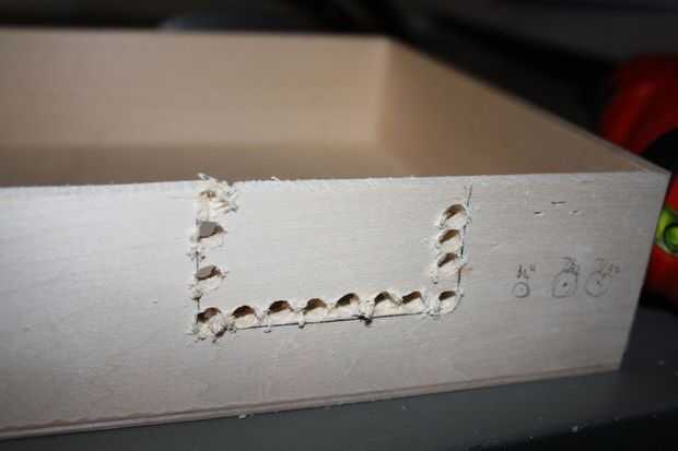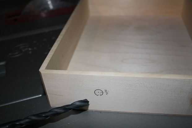 Cuando usando el agujero vio, o lo que se utilizar para taladrar agujeros grandes, asegúrese de fijar firmemente la caja con un tornillo de banco para madera... O tal vez dos. O tres. El agujero vio realmente quería el tiro la caja a través de la habitación en lugar de realmente taladrar un agujero en él y después de un tiempo, así que hice yo. Y por favor esas gafas. Y tal vez guantes de cota. O un traje entero de cota. O mejor aún, utilizar un drone de robot del Escuadrón de bombas para hacer la perforación con los accesorios de Sierra de agujero horrible. Será mucho más seguro así.