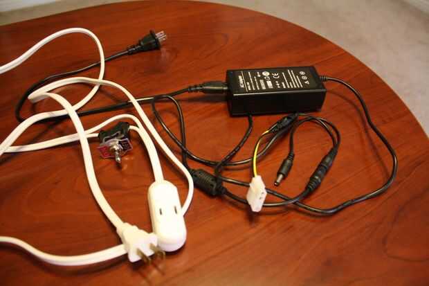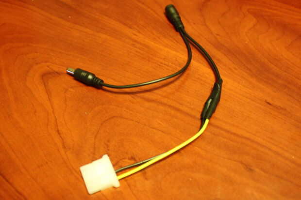 Alternativamente, podría conectar un 12V a convertidor de corriente de 5V a otro molex Y-divisor, alimentación de 5V necesarios para los cables de LED.