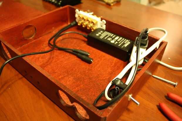 Más tarde descubrí que era capaz de correr las luces apagado 5V USB por la parte trasera del amplificador, y no necesito usar un ladrillo de alimentación separados para la iluminación. En retrospectiva, no era necesario este cable de extensión en todo y tampoco te. Qué debería haber hecho era obtener un mucho más enchufe para el ladrillo de la energía (el que vino con él fue muy, muy corto) y entonces coloque el interruptor en el enchufe de CA y correr hacia la parte posterior de la caja, al igual que con el cable de extensión. Puedo un día hacerlo, pero ya que he no lo hayan hecho, no tengo fotos para mostrar cómo.