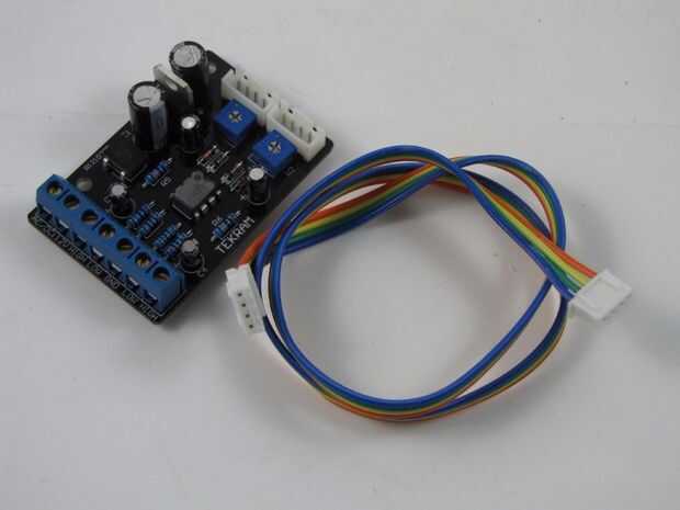 Para empezar, un conector molex macho de 12V y cortar los cables, apenas como usted para la energía (otra vez, solo necesitas el cable amarillo y negro). La energía entra los dos conectores en el lado izquierdo, etiquetado como AC/DC 12V (así que supongo que puede manejar CA, también). Conecté el cable negro con el conector izquierdo de AC y el cable amarillo al conector siguiente, pero los cables probablemente podrían ir de cualquier manera, desde el tablero al parecer tiene un rectificador de CC. Los restantes cinco conectores están etiquetados alto, bajo, tierra, baja, alta. Es donde se conectan tanto cable de un cable de audio 3.5mm pelados. Volveré a en un momento. En el frente de la Junta son dos conectores de 4 patas que parecen un poco Motherboard, Tarjeta madre conectores del ventilador. La Junta debe vienen con un cable de conexión de los conectores. Curiosamente, la Junta sólo vino con un tal cinta cable con un conector en cada extremo (ver foto). No debe confundirse. Sólo corte el cable en el centro y tira unos 3/4 de pulgada de los cables expuestos. Te soldar esos cables expuestos a los medidores de VU.
