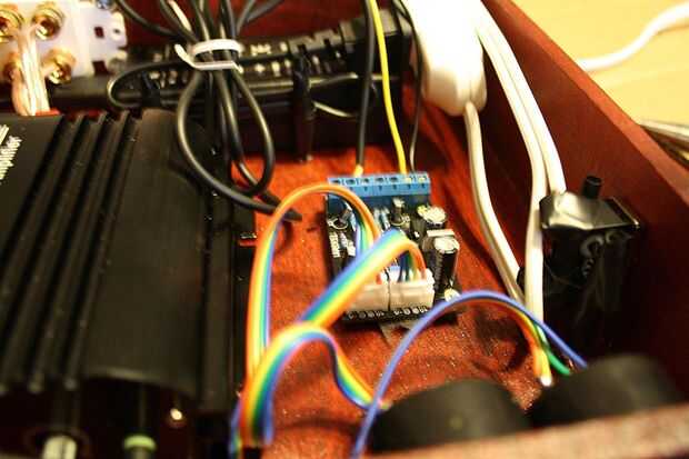Cuando se enchufe el conector molex de 12V, que usted debe ahora han atado con alambre para el tablero de conductor del VU, en el extremo de molex del separador modificado 5,5 mm DC cable y conectar al ladrillo de la energía de 12V, deberán encenderse las luces del medidor VU. Si no lo hace, puede ser conectados mal o algunos otros cableado puede no ser correcto. Si enciende, tome el cable de audio 3.5mm pelados y conecte a la toma a algo tocando música. Luego tomar los cables en el extremo desforrado y prueba en cada uno del alto, bajo, tierra, baja, alta conectores, observando el comportamiento de los medidores de VU. Si la señal parece débil baja, prueba de ellos en lo alto; Además, si alta parece demasiado de gran alcance probar bajo. Creo que terminé con los cables de audio 3,5 conectados en los dos conectores bajo, uno para la derecha y uno para el sonido estéreo del canal izquierdo. Los conectores no es necesario soldar, ya que utilizan un mecanismo tipo tornillo para sujetar los cables en su lugar.