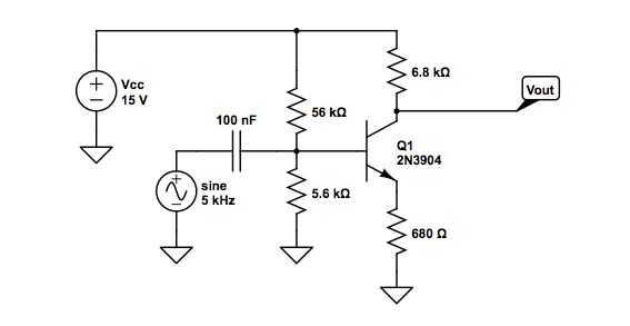 Hablemos un poco sobre el circuito antes de empezar a construirlo. Si ignoramos completamente la señal de entrada senoidal, podemos ver que todavía habrá un circuito completo y por lo tanto una tensión en la salida. Con base en los cocientes de los resistores utilizados aquí, este voltaje (llamado voltaje quieto) calcula que aproximadamente la mitad de la tensión de entrada. Con el voltaje ya en gran cantidad, es lógico que la adición de este seno voltaje de entrada, aunque pequeño, dará lugar a una tensión de salida mucho más grande. Por lo tanto, el amplificador!