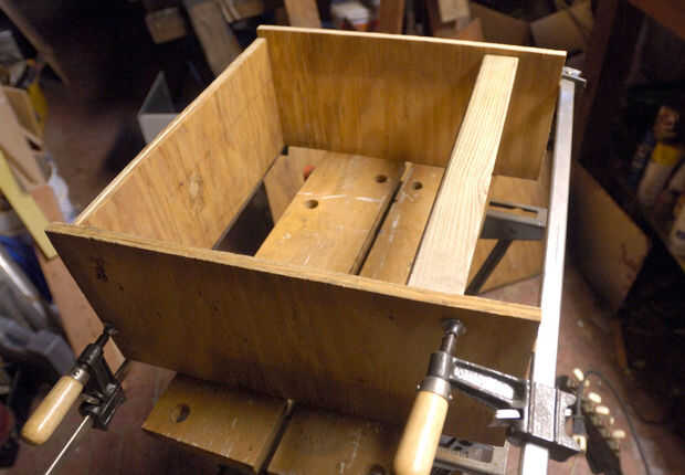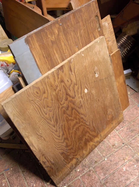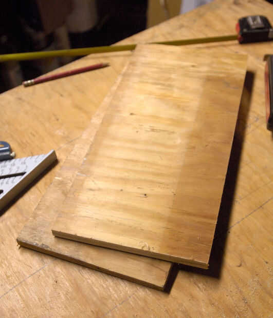 El cuerpo del armario es madera contrachapada de 1/2 pulgadas, el frente es de 3/8 pulg.
