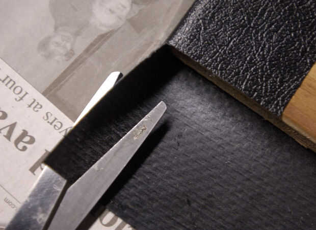 --Cortar la superposición excesiva, hacia fuera hacia la parte posterior del borde (corte #1.)