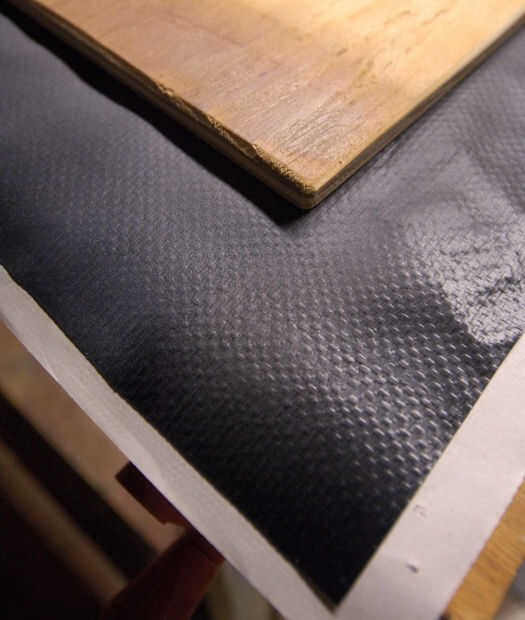 Coloque con cuidado las dos piezas juntas. Trabajar desde el centro hacia afuera, empujando cualquier burbuja de aire hacia fuera con un rodillo.