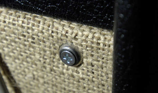 El paño de la parrilla es sin teñir arpillera; un bonito tejido abierto que es muy transparente a las ondas de sonido.