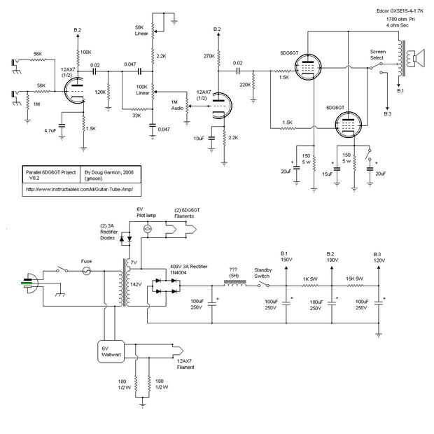 Se ha añadido una fuente adicional para las pantallas de 6DG6GT: el transformador de salida Edcor tiene un toque de pantalla del 40%. Ahora esto es conmutable entre el viejo grifo B.3 PS y el tap del transformador.