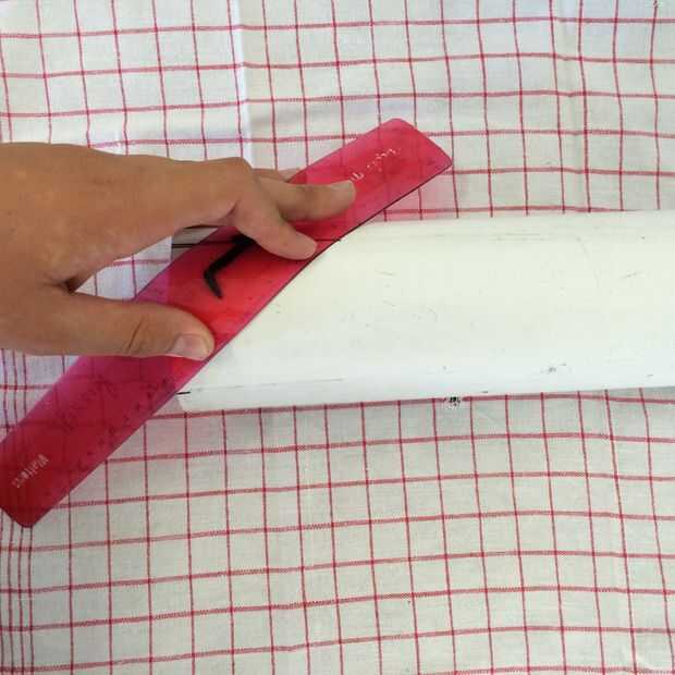 Únete ahora al final de la línea larga a punto, creando un triángulo. Repetir este proceso para ambos lados de la tubería.
