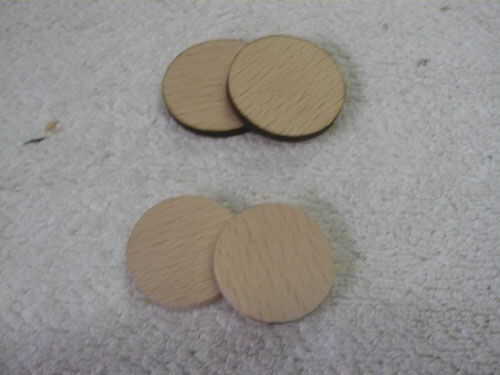 Corte ahora dos discos de madera con un diámetro ligeramente más pequeño que el tubo y también cortar dos discos con un diámetro de 4 mm más grande que el tubo. Con un pirograbado oscureció el espesor de los discos grandes, es sólo una cuestión de estética.