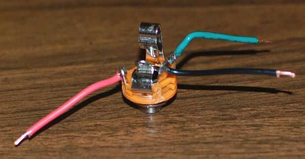 La soldadura de los cables en el 1/4" Panel de montaje Audio Jack.