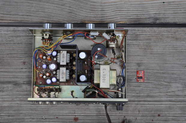 En foto 2, tenemos un amplificador estéreo pequeño era de 1960, junto a ella es un franqueo estampado tamaño de circuitos. ¿Qué tienen éstos en común? Básicamente tienen la misma potencia de salida, aprox 3 vatios por canal. El viejo amplificador utiliza circuitos de transistor tradicional. La Junta poco es una clase muy eficiente D PAM8403 Junta de amp. La miniturization es increíble. No es ningún slouch en calidad de sonido ya sea como no empujó a distorsión.