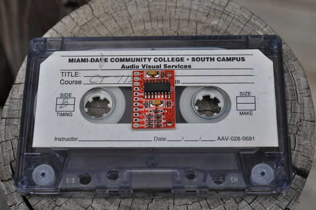 Pic 3 tenemos el chip amplificador de PAM8403 en una cinta de casete para la comparación de tamaño.