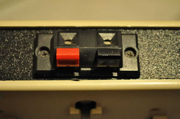 En la foto 4 verá a un candidato ideal para un conector de altavoz de 4 cables. Ésta es electrónica MCM, así como muchos otros proveedores. Algunas tiendas de estéreo del coche que hacen trabajos a medida incluso tienen estos para la venta por un dólar o dos. Se trata de se montaje en la parte posterior de la base. Usted necesitará encontrar un lugar donde usted puede cortar una pequeña sección de la caja hacia fuera con tijeras para alambre y Monte la banda de jack. Tenga en cuenta que la banda de jack obtiene enroscada que tome en cuenta la longitud de los tornillos que vienen con él. No quieren los tornillos cortocircuito cosas hacia fuera dentro del amplificador cuando vuelva a armar.