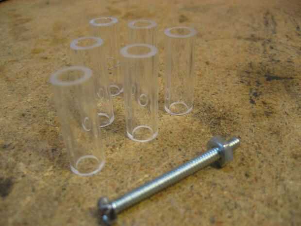 Cortar tiras de seis pulgadas de 3/8 tubería de diámetro exterior acrílico. Los espaciadores deben ser de 1-1/16 pulgadas de longitud, pero que variará dependiendo del tamaño de los altavoces. Asegúrese de que son todos la misma longitud.