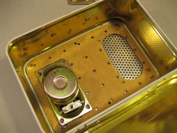 El chasis consiste en tres capas. El primero es el altavoz de la parrilla sí mismo. El siguiente es una capa masonite que sostiene los altavoces y el amplificador. La capa superior crea un área de compartimiento secundario que contiene el transformador de 12 VCC, cable de parche y pack de batería opcional.