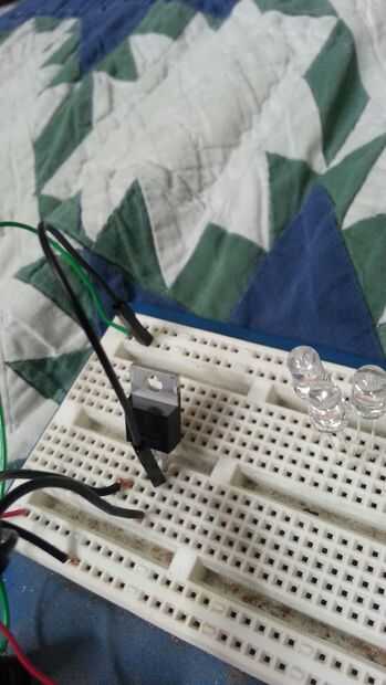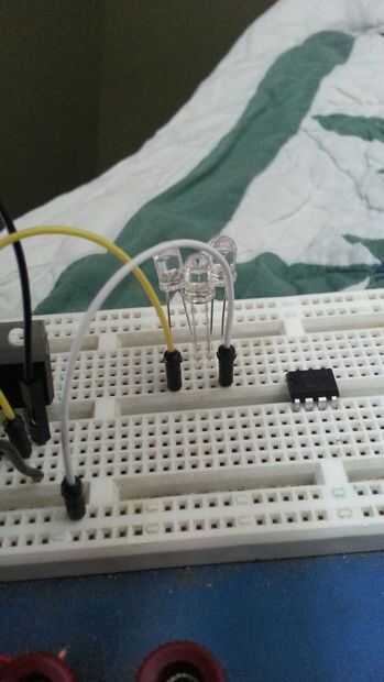 Los LEDs se establecerá en serie, por lo que la pata larga del LED se encenderá en el mismo riel como el negativo otro LED y así sucesivamente.