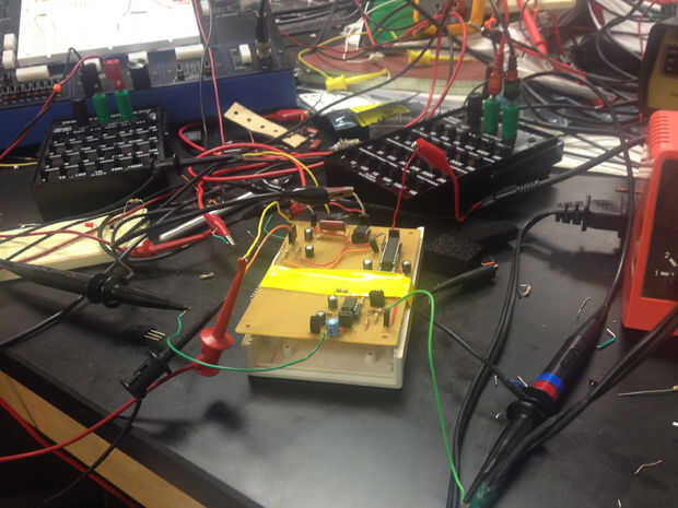 Este es un op-amp LM741 construido sobre un protoboard. El op-amp LM741 es un chip IC de 8 pines, pero pensé que sería divertido para construir mi propio en un protoboard. Hay cuatro secciones al chip, será construido en cuatro tableros de Adafruit P