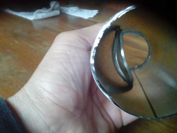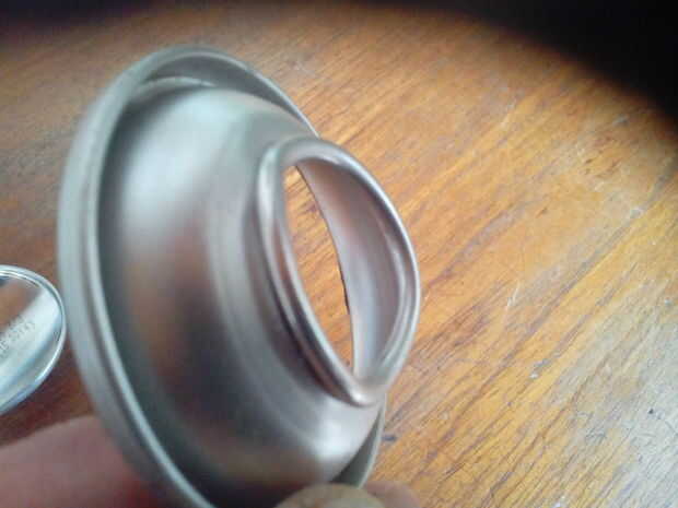 Un poco la parte inferior de la curva, para dejarnos introducir en el poder y con la ayuda de un martillo la parte superior de la curva como se ve en la imagen, esto hará un mejor asiento de la can sobre la base También tenemos que marcar un rectángulo según el tamaño de nuestra celda de dejarnos ponerlo en, hacer la ventanita algunos milímetros más grande por lo que la célula entra libremente