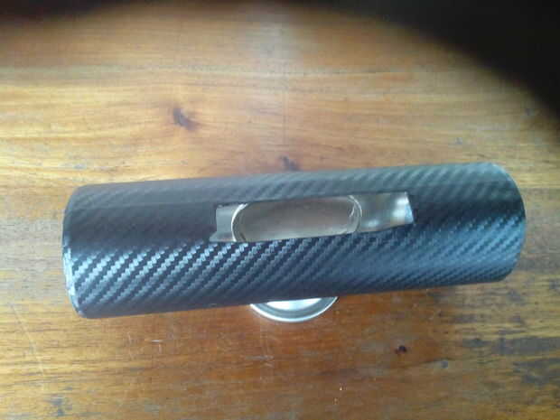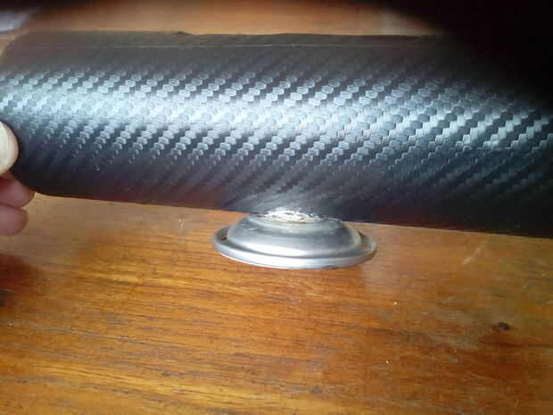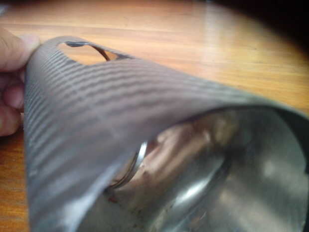y después de soldar la base y el reflector de sonido en el interior, cubiertos con hoja de carbono la fibra, es un amplificador muy eficiente, suficiente amplifica el sonido de la célula