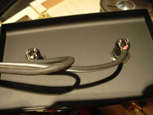 Ahora ha llegado el momento de montar los botones y conseguir este acabado para arriba.  Poner los botones a través de los agujeros que has hecho y apretar con el hardware que vinieron con.  Entonces tire el cable a través de su agujero y prepárate para la soldadura de algunos botones.  Del cable RCA, de una "canal" (como la izquierda o la derecha) se destinará a cada interruptor.  En efecto, cada botón está conectado a una de las líneas de señal (izquierda o derecha del enchufe) y puntos en común.