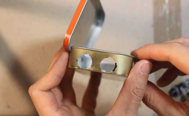 Después de eso, podemos colocar la lata en la pieza de madera de apoyo.