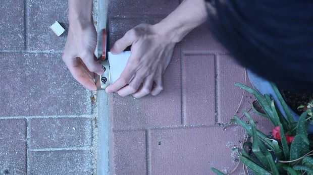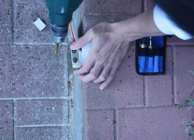 Luego tomó un clavo para perforar un agujero en el centro de la marca y utiliza una broca de paso a paso para perforar el agujero.