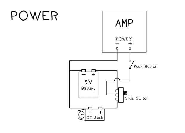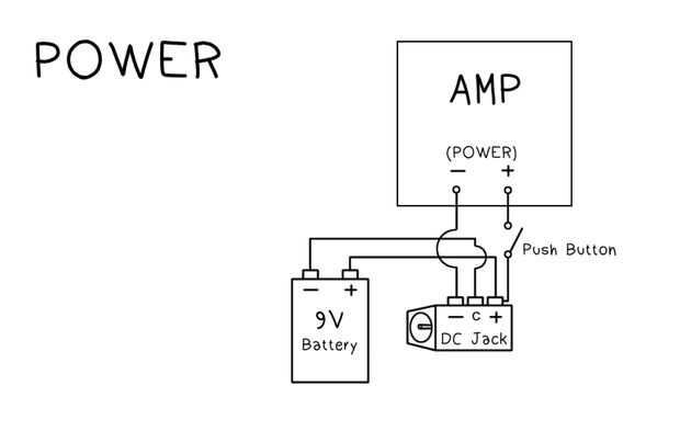 Si tu DC jack no está conmutado (2 puntas) y luego ver el segundo diagrama.