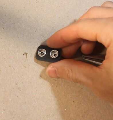 Recuperación tip: si se quita la pieza superior de una pila de 9V muerta con un par de pinzas, puede utilizarlo como un conector 9V.