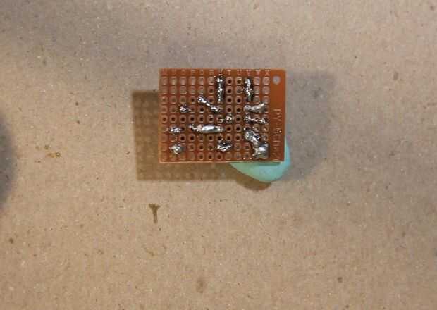 También hice un terreno común de punto en la esquina del tablero, pero va a volver a soldar las conexiones a tierra una vez que conecte todos los componentes.