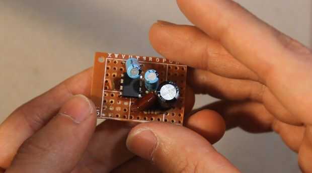Así que una vez que todos los componentes del amplificador se reunieron, empezar a organizar en el protoboard y doblar las patas en la parte posterior para mantener en su lugar.