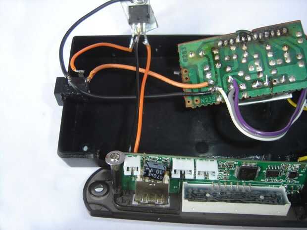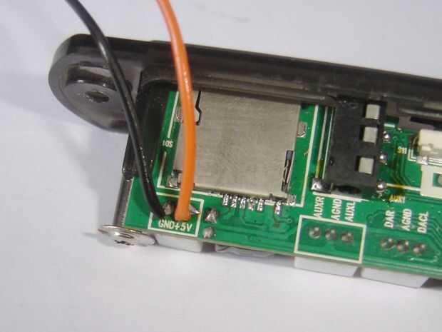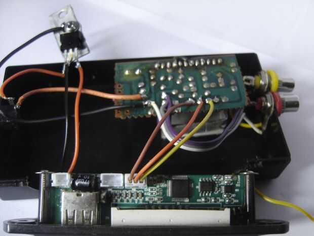 Tomar 2 cables rojo y negro para la conexión del circuito de reproductor de MP3. Cable rojo se conecta a 5 V de MP3 player circuito y cable negro está conectado a tierra del circuito de reproductor de MP3. Ahora estos 2 hilos se conecta a IC 7805, negro esté conectado al terminal medio del 7805. Y el terminal rojo esté conectado al terminal pasado del IC 7805.