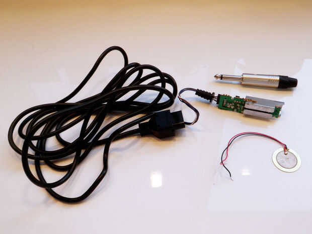 (Utilizado el cable de Laser mordaza Zapper [pág. 138 del libro] porque tiende a ser más largo que normal cables de controlador NES. Esto es bueno para tocar la guitarra).