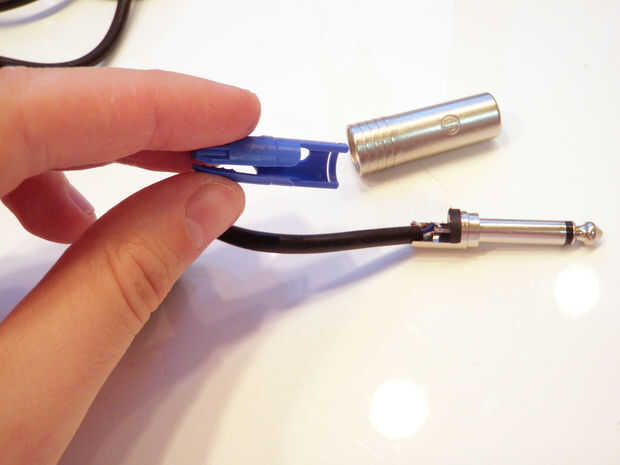 Una vez que los dos cables se sueldan, armar su enchufe detrás de la misma manera que usted se aparte.