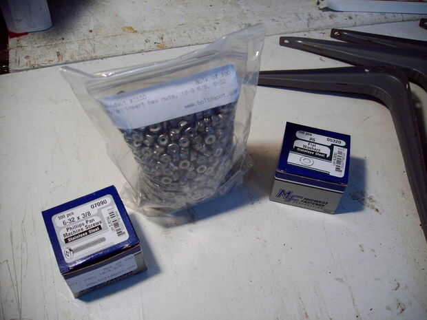 Generalmente solo uso acero inoxidable, pernos de tamaño #6-32 y tuercas de nylon - y arandelas por supuesto. pernos de 1-1/4" longitud trabajaban gran para la fijación de los soportes de madera de 1 x 2 y 1 x 3. 2"+ longitud tornillos son necesarios para attaceh dos piezas de madera juntos. Creo que tengo de boltdepot en línea. Varios tornillos para madera son y pueden usarse en lugar de los pernos. Me gusta los pernos ya que la madera no tiende a dividir.