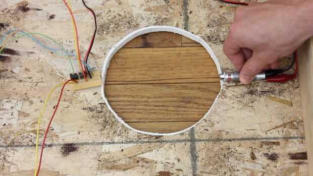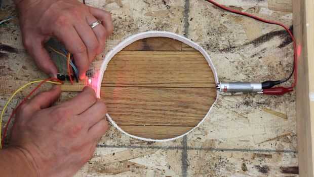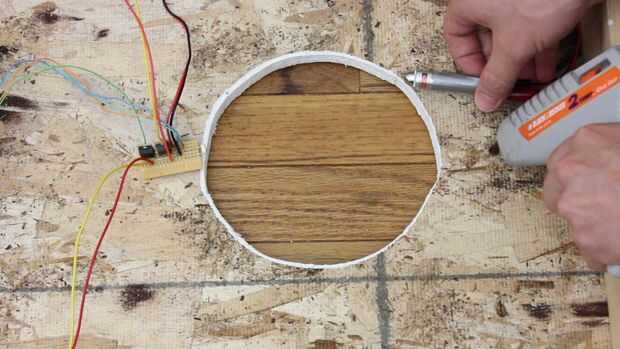 Ahora es necesario fijar el puntero láser y el sensor de luz en el tablero de juego. Para ello, sólo utilicé pegamento caliente para pegar las piezas a la parte inferior del tablero. Sólo asegúrese de que el sensor de luz está perfectamente alineado con el haz del puntero láser.